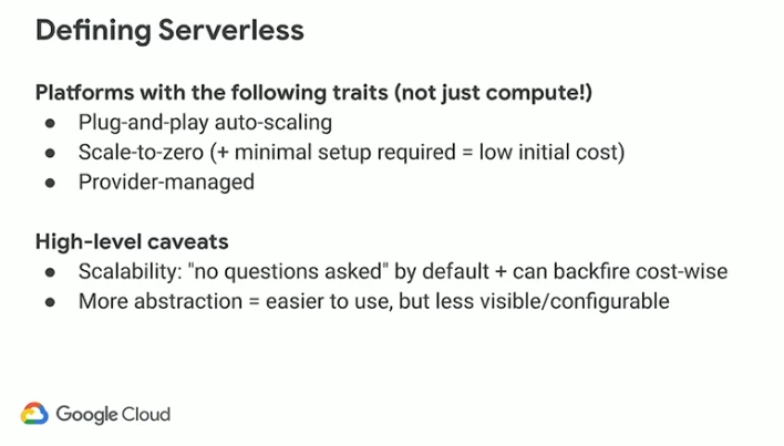 ここでは、サーバレスを以下の性質をもつプラットフォームとして定義しています。
