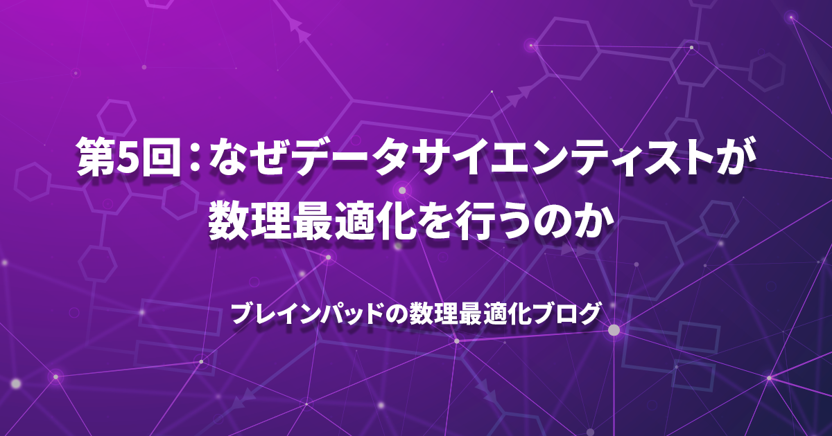 さて今回は、そろそろ皆様も数式に疲れてきた頃かなと思いますので、今回は敢えて数式を使わずに、「なぜデータサイエンティストが数理最適化を行うのか」をテーマに書いてみたいと思います。
