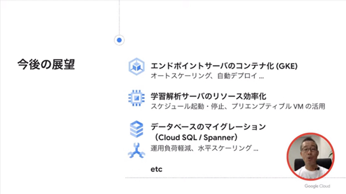 当日は、当社エンジニアの井上が、「大規模サービスのインフラ環境を Google Cloud へ移行した取り組みのご紹介」と題し、当社を代表する自社開発プロダクト「Rtoaster」のインフラ環境を Google Cloud に移行した際の内容を、以下の4点をポイントにご紹介しました。