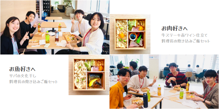 あっという間に午前のワークが終わり、12時になりました。おなかがすいてきた参加者のみなさんには「フィッシュ or ミート」のお楽しみランチが届けられました。たかがランチ、されどランチ。休憩のひと時も、楽しむことを忘れない参加者たち。団らんしながら心と身体の栄養補給が完了し、みんな笑顔で午後のワークに向かいます。